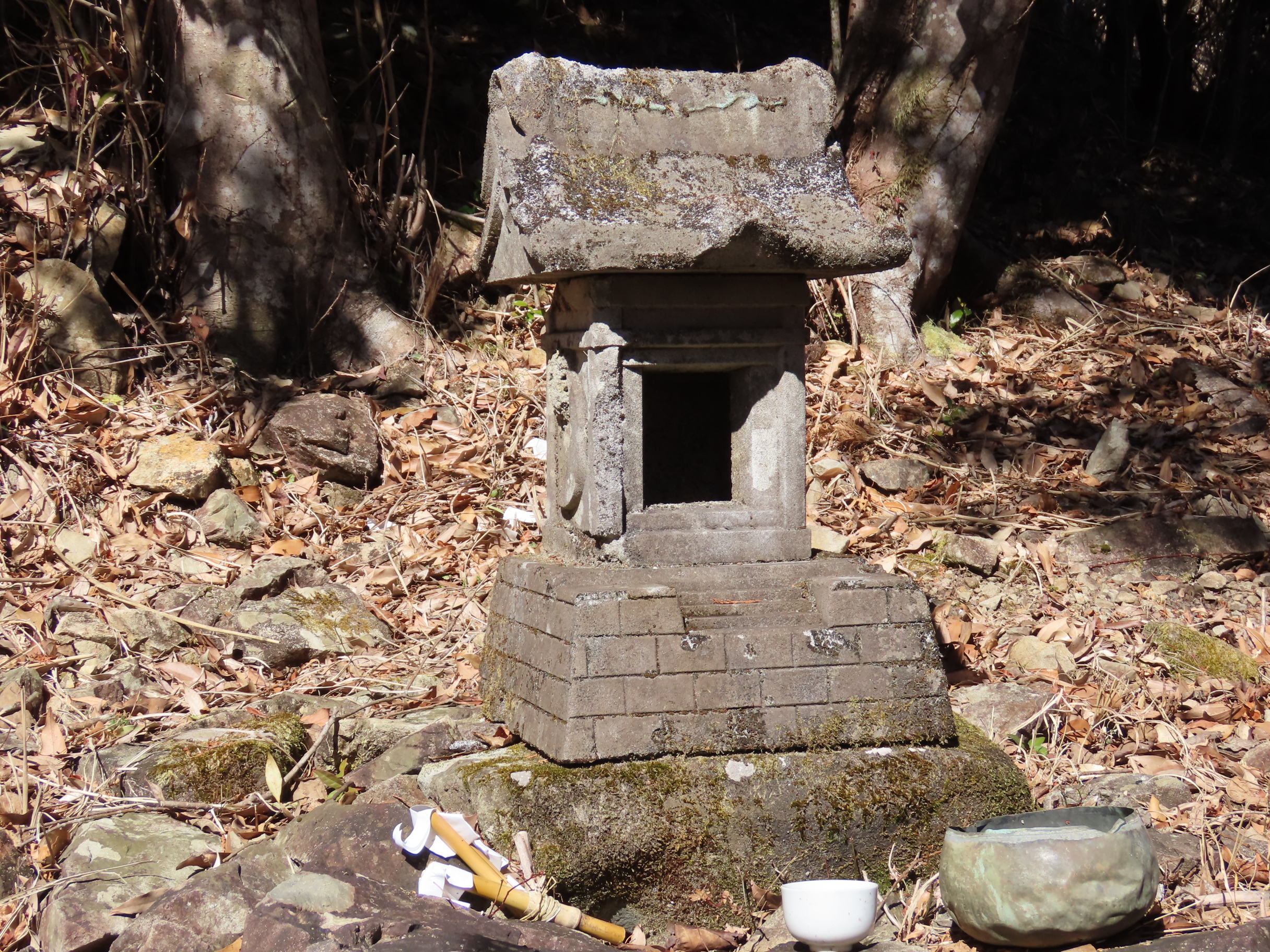 ほぼ、水平道から林道に出て向かいの支尾根に取り付く。入ったすぐ先に石の祠が祭ってある。高度を上げ馬王平(まおうだいら)から南下する主尾根にのった。地図上の580m地点を越え下り切れば小広い馬王平に出る筈だ~
