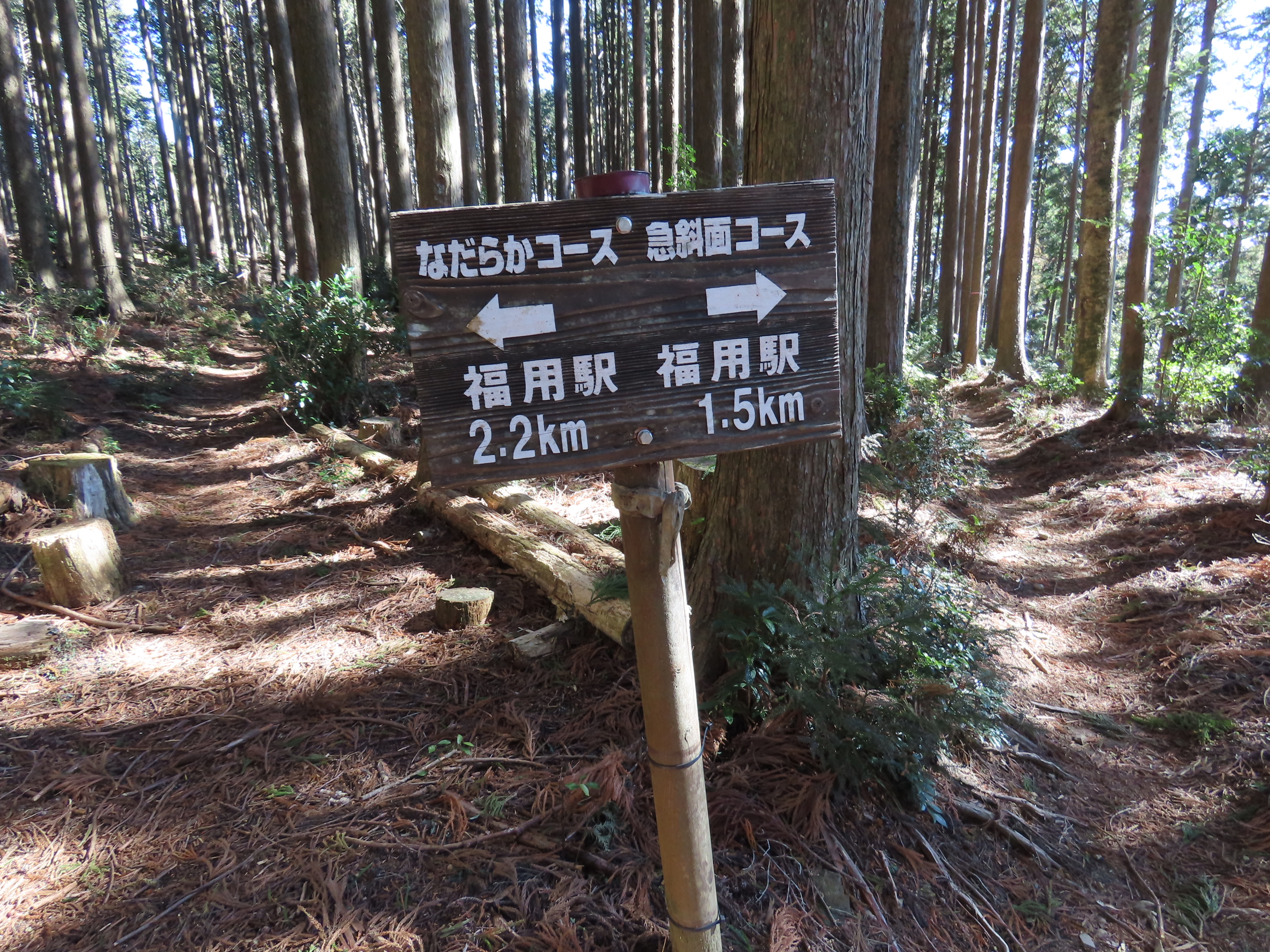 今まで登って来た急斜面コースとなだらかコースの分岐に着く