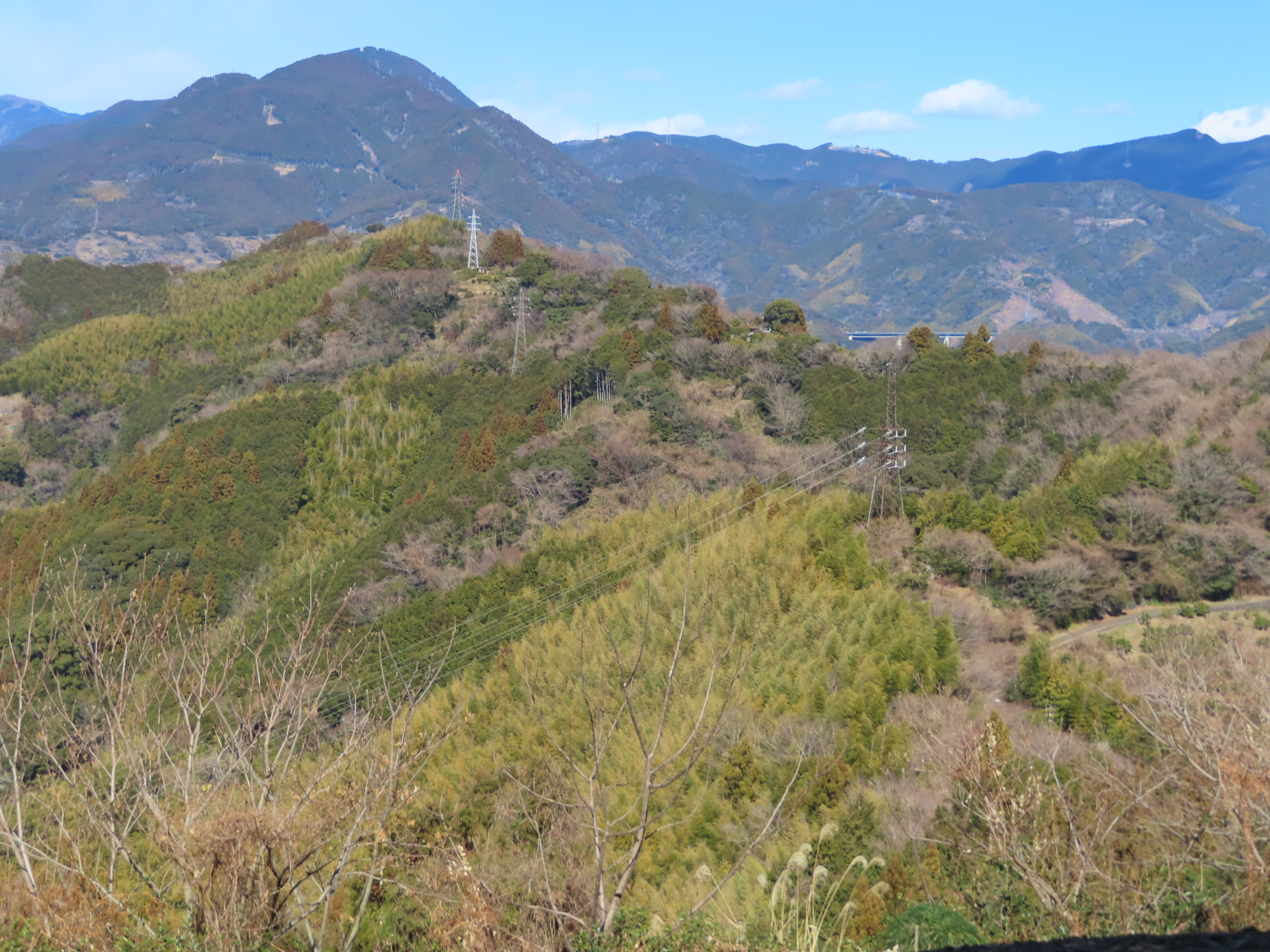 稜線上の鉄塔が4本ある。一番奥の鉄塔の左下に小さく見える樹が見えているがそこが貯水タンクのある場所だ!