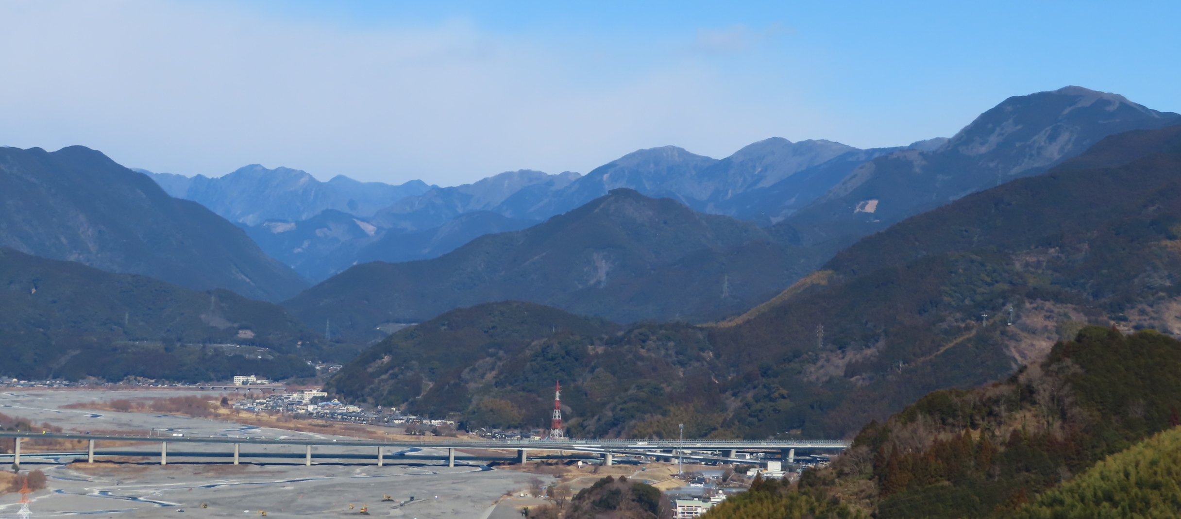 救世観音を過ぎ、賎機城址付近から安倍川の先には安倍城址が良く見えている~