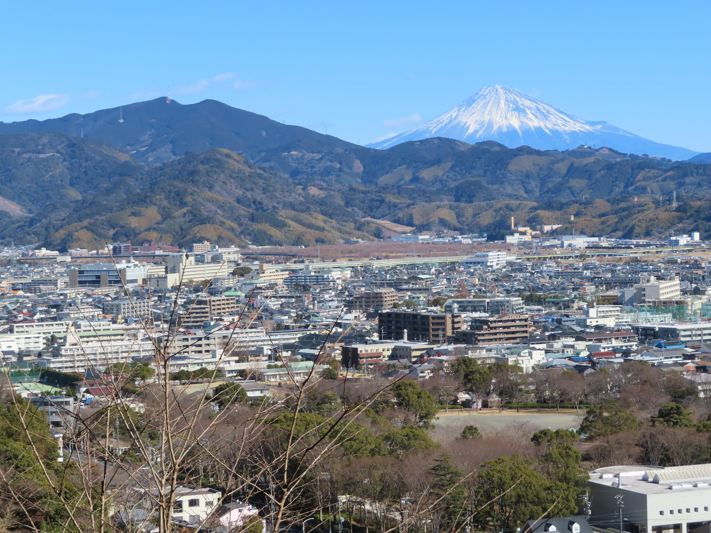 麓山神社(はやまじんじゃ)の裏手から望む富士山~今日は温度がグットと下がって良く見えている