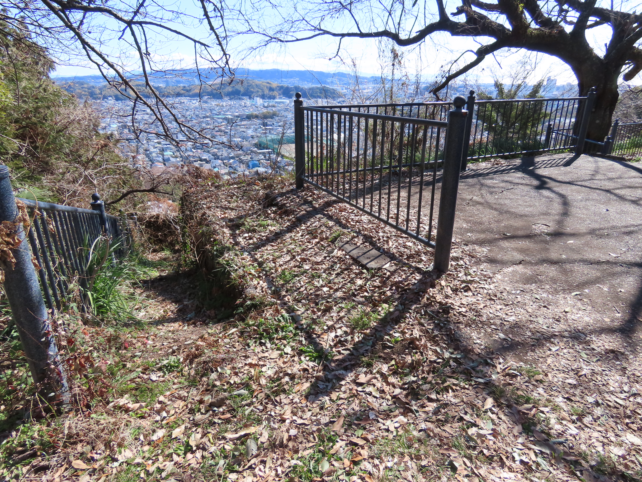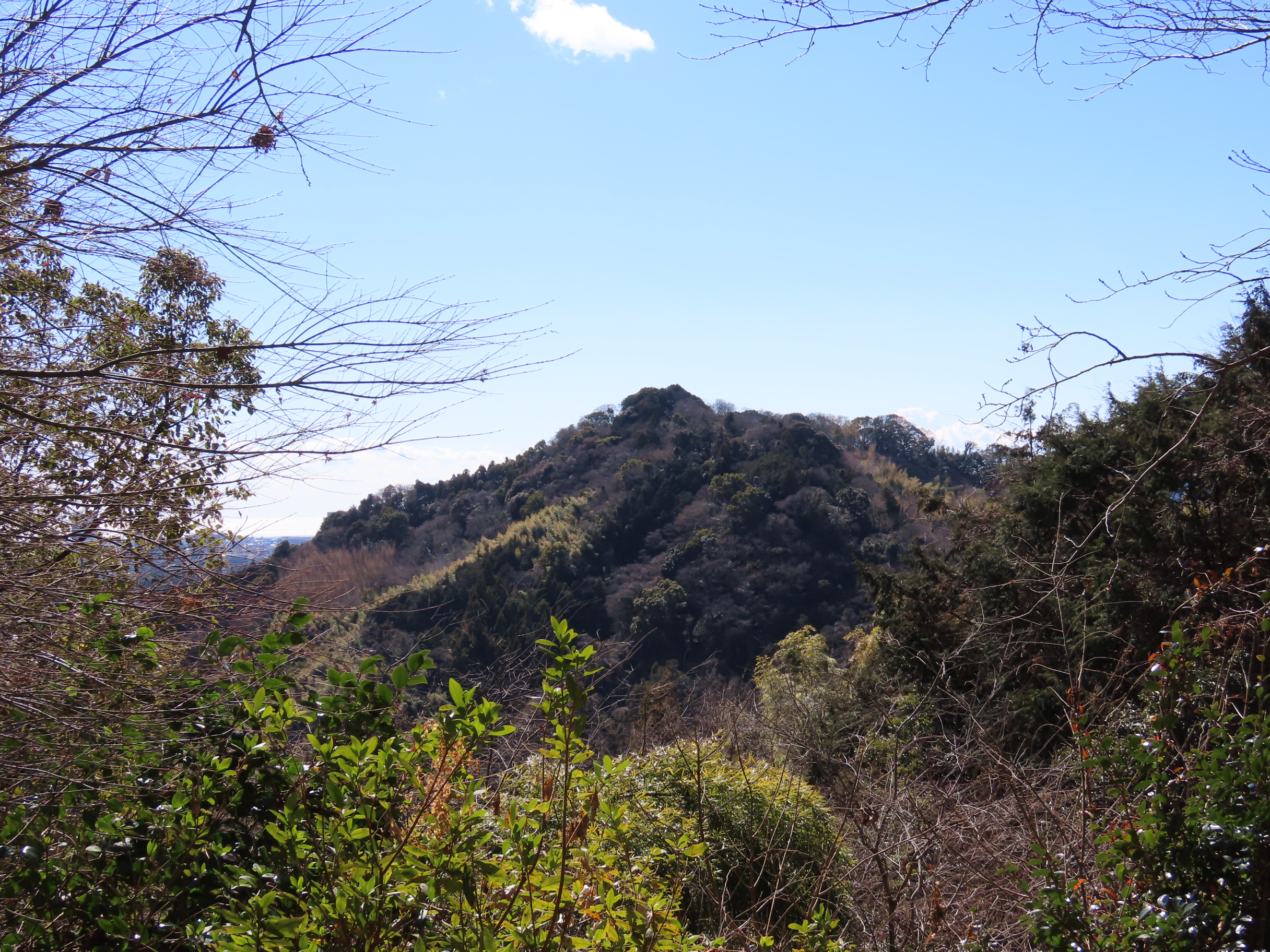 三角点標石のある一本杉は、城北公園から見るとこの写真では真ん中ガクンと下がっているように見えている場所になる。
