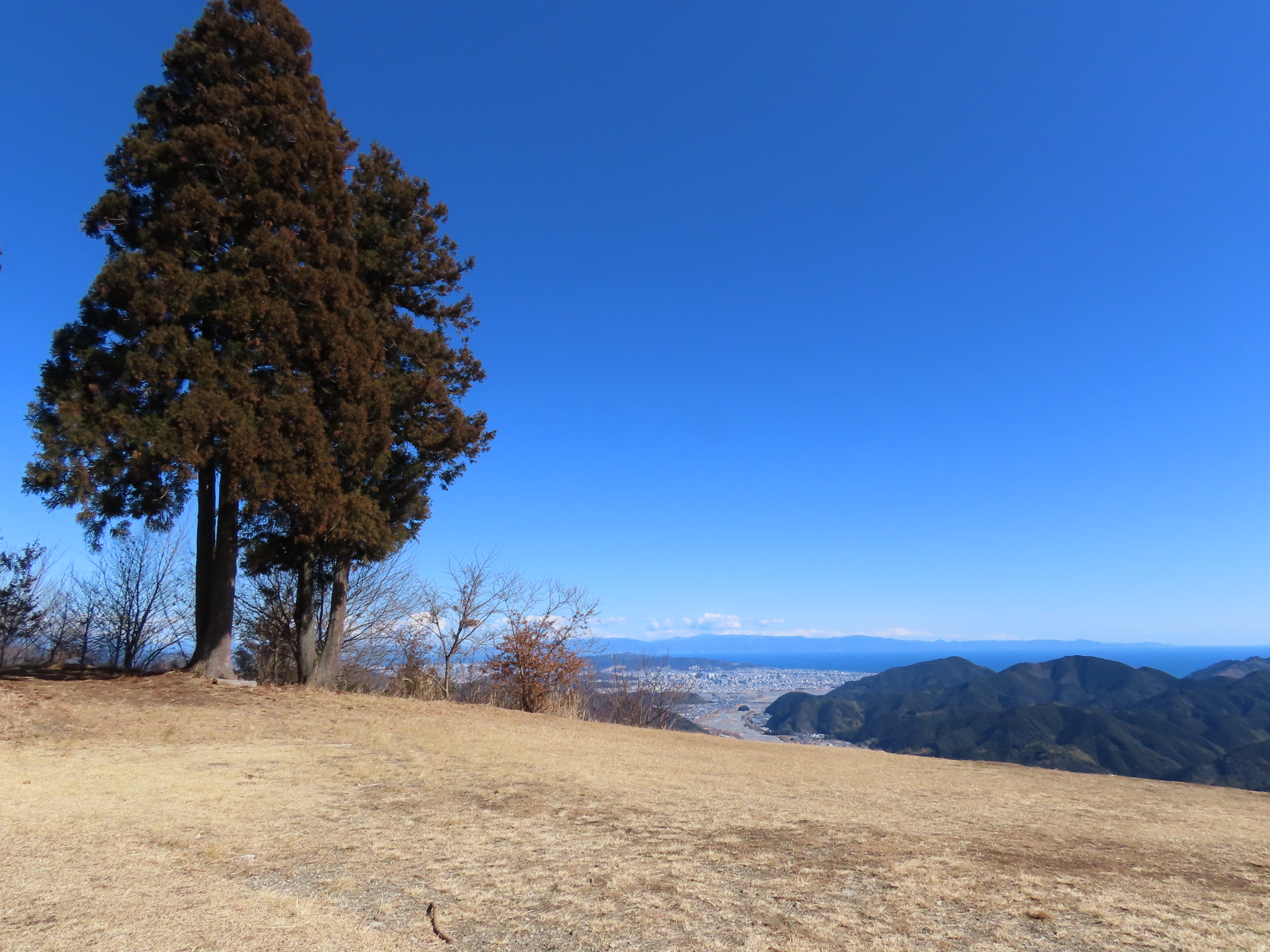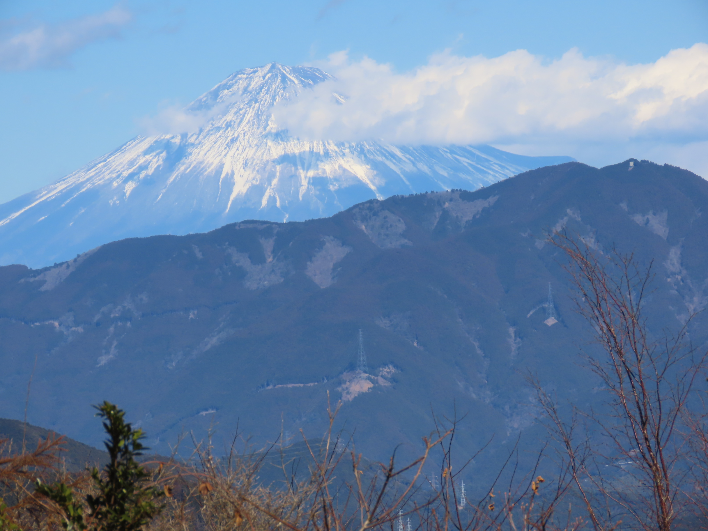 東側には、めっきり雪が減った富士山と、手前に静岡市民憩いの山、竜爪山(文珠岳)