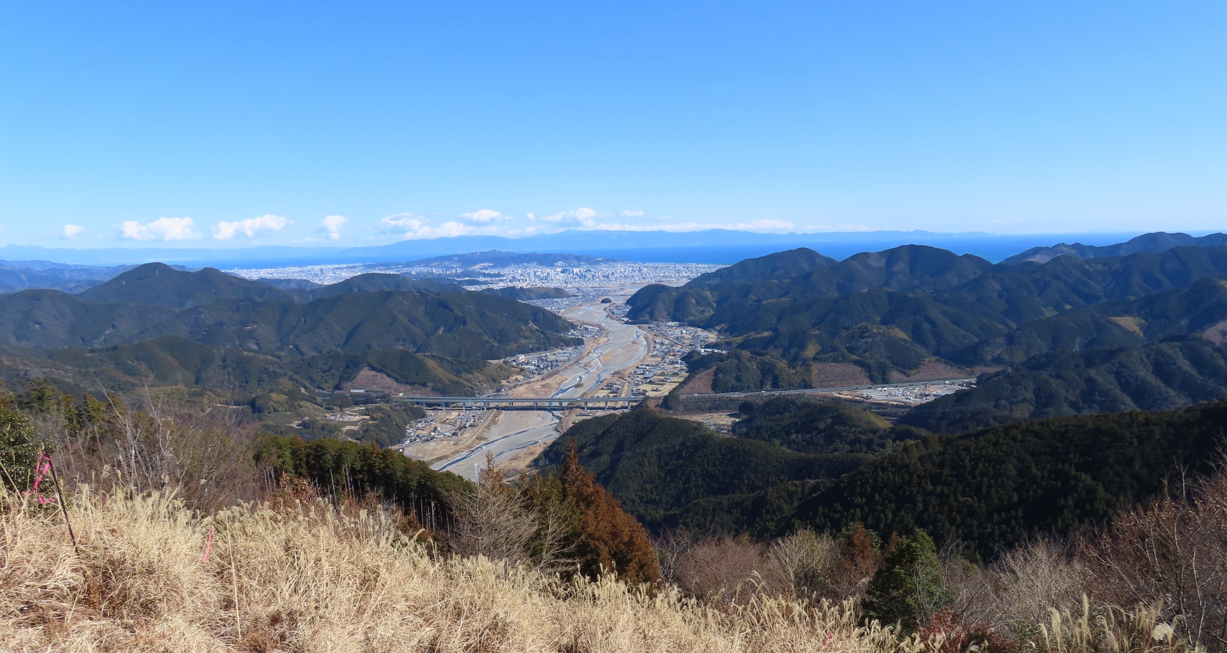 視界も開け、眼下に藁科川や、支流の水見色川と周辺の集落が箱庭の如く望める~