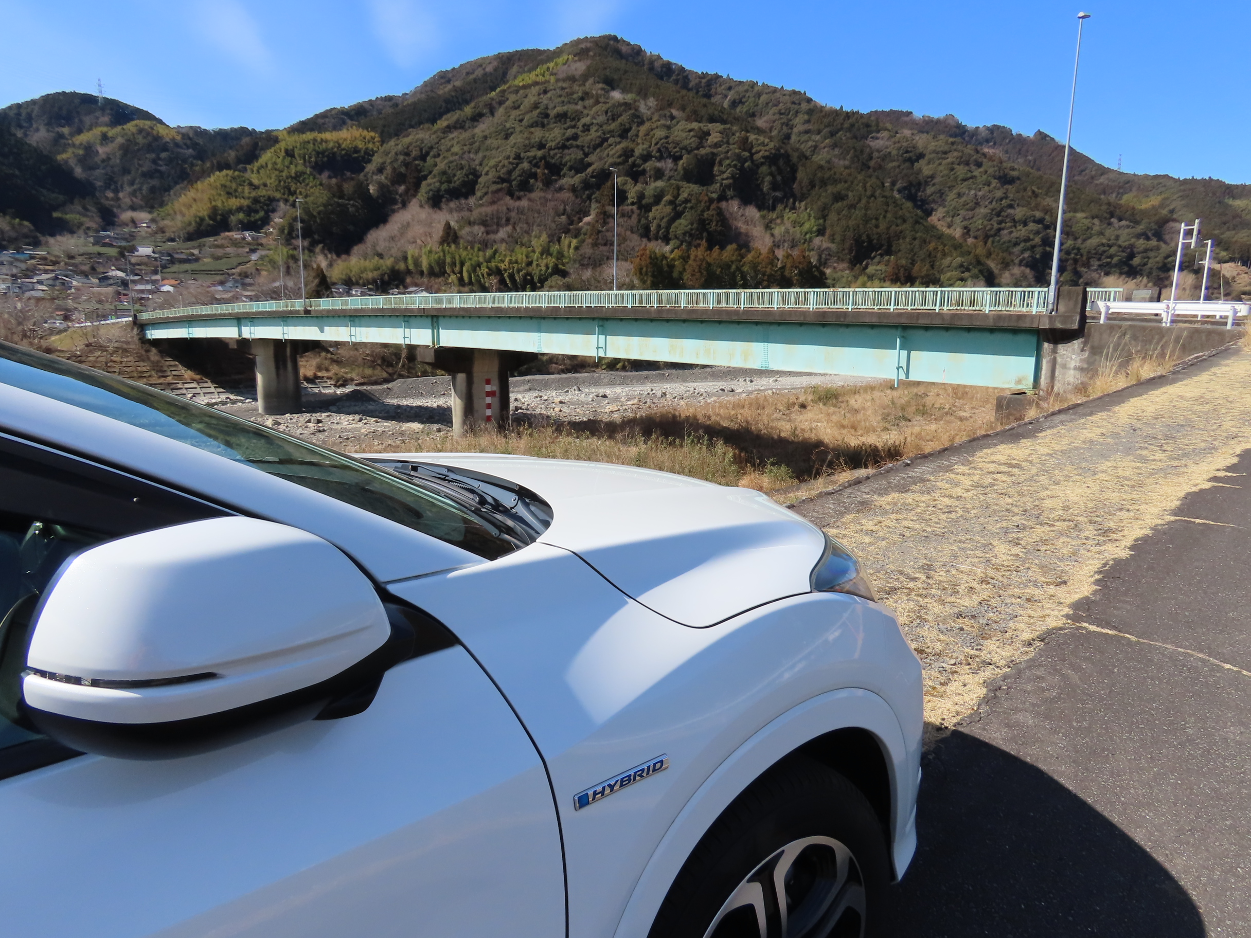 藁科川に架かる富厚里(ふこうり)の橋のたもと、下流側左岸の土手に駐車(標高85m)