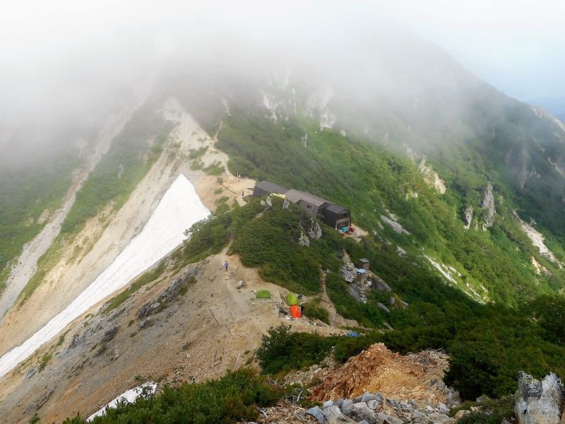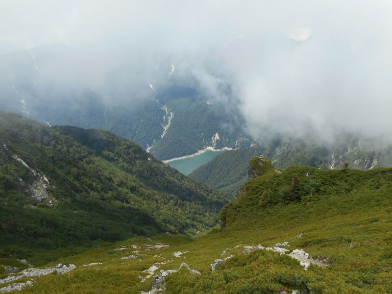 しかしながら、現在いるのは本日の稜線中間地点の新越乗越であり、進むか戻るしかなくエスケープルート無し。。。さてどうしたもんかねぇって本人言ってるけどどうなるかな?