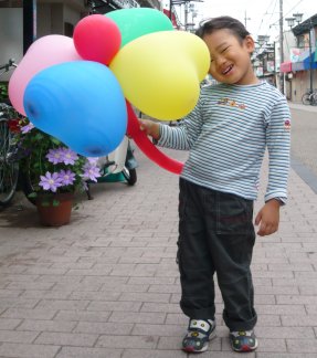 今日はこどもの日です。風船を持ってゴキゲンさんです。ええやろ~。アンパンマンショーも見に行きました。でも、見てない感じ・・・アンパンマンの仲間たちと一緒に写りました。アンパンマンに肩を抱かれているのがたっくんです。ごめんね、パパ遊んであげられなくて。