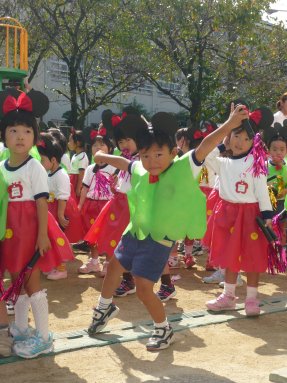 運動会のときは場所が悪くうまく撮れなかったので未就園児に披露するときに撮りました。たっくん、カワイイですね。
