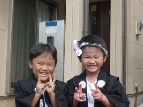 今日は地元のお祭りでした。仲良しのゆうくんと一緒に写ります。エエ顔ですな。お祭り大好きたっくんです。