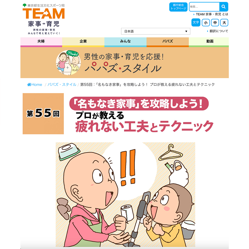東京都生活文化スポーツ局男性の家事・育児みんなで考え変えていく!パパズ・スタイルNo55が公開しました!新作漫画「”名もなき家事”を攻略!」三コマ目に最後のオチの伏線があります^^ぜひぜひご覧くださいませ!#パパズスタイルhttps://team-kaji-ikuji.metro.tokyo.lg.jp/papas-style/55/