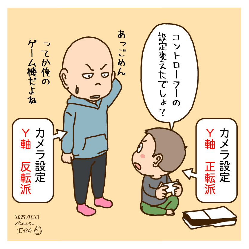 ゲームのカメラY軸設定#親子で逆#カメラ設定 #ゆるいイラスト #ゆるい絵お問い合わせはエイイチHP企画構成・イラストを担当しました!大好評発売中!見えないボクと盲導犬アンジーの目も当てられない日々(小学館)ぜひぜひご覧ください!