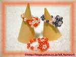 ◇ 花編みのツインリング ◇メインのコーナーのはずでしたがすっかりご無沙汰になっておりました。出来るならこのまままた続けば良いのですけど、ネ。引き続き依頼されているビーズを。今回は二連の花編みリング↓↓ ◇材料はコチラ◇ ↓↓材料:◎キスカ(プラスチック) ・パール 4mm……ピンク ・パール 4mm……シグナルレッド ・パール 4mm……グレープ ・パール 4mm……ライトパープル ・パール 4mm……ムーンライト ・パール 4mm……ジェット ◎キュービックジルコニア ・丸型 3mm……クリスタル ◎丸小 ・マリンブルー ・ピンク ・シャム ・スカイブルー ・ジェットレシピ:「はじめてのビーズアクセサリー1」よりもうちょっともうひと工夫欲しいかな?ちょっとモノ足りない感じがします。あえて丸くしたせいでしょうかネ。広げた方がよかったかな?いやいや、やはり最低三色は使わないと映えないしダメかな? ネ。