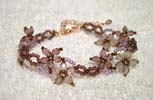 ファイアポリッシュと丸小で編んだ花編みブレスレット。
