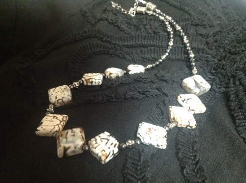*** 四角い形がかわいい *** 少し前にUPしたこけめのうのネックレスと似たバージョンだ! こんな感じの色合いのラブラドには薄いピンクの淡水パールがよく似合う! 気軽につけられる細いセミロング! このところ日記が何日か遅れていて間に合わない! やりたいことがたくさんあるんだけど、やりこなせない! 何で1日は24時間しかないんだぁ~!