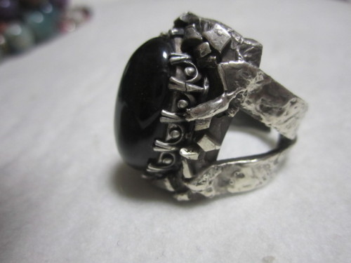 *** お色直しその2 ~最終形~ *** 前に1度作り直したリングだがイマイチしっくりこなくて 再度作り直し! 今度はバッチリ気に入った! 超レアな石にワイルドなざっくりとした感じのシルバーの台!! 指にもぴったりフィット! これが最終形!・・・たぶん^^;