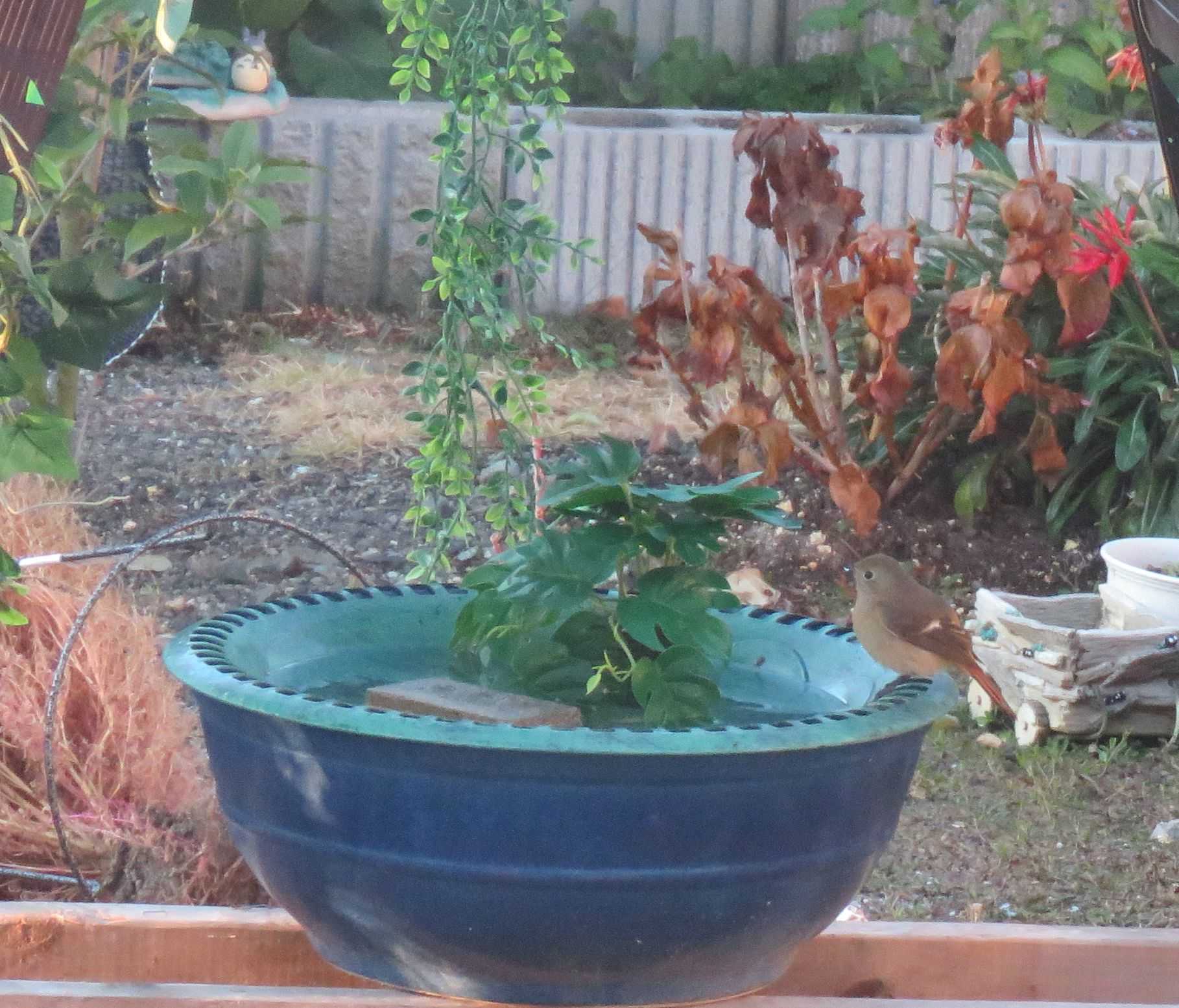 朝早くから ジョウビタキ・・ 水は 凍ってなかったかい?