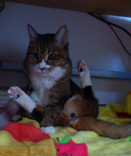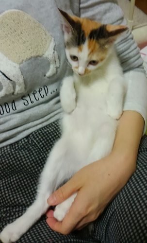 みけちゃん、お名前があんずちゃんになりました。今日、あんずちゃんママから甘えん坊の写真が送られてきました。今日は1日、ママの後をついてまわったそうです。家に居た時は兄弟といたせいか、わからなかったのですが、びびりさんで甘えん坊さんみたいです。残ったイケメン茶系組 あんずちゃん達のように、素敵な里親さんにめぐり逢いたいね。成・子猫の譲渡会が 11月8日、11月23日、12月6日に開催されます。http://www.geocities.jp/soranekojoutokai/joutokai/H2711H2712.pdf成・子猫を迎えようと思っている方、是非お越し下さい