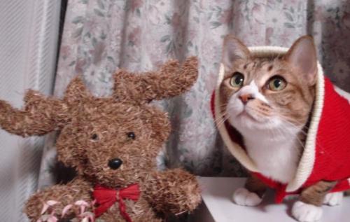 この写真はいつのクリスマスだったか、にゃーちゃんもあっと君もまだ元気でにゃーにゃ家が幸せだった頃のもの。まだ、すずちゃんは家に来てない頃のです。にゃーちゃん天使みたい。今日はにゃーちゃんの四十九日でした。お友達がメールをくれました。覚えていてくださってありがとうございます。1年の間に次々に3匹旅立たれてしまってにゃーにゃ@何かが麻痺してしまったようです。毎日、家に帰るとにゃーちゃん!!って呼びますが当たり前ですが返事はないです。看病で無理していたのか、何なのか今頃、胃腸にきてしまい12月に入ってから病院通いをしています。ストレス性の病気と言われましたが、いつ治ることやらです。良くなったと思って、普通の食事に戻すとまた症状がでるの繰り返しで。ねんの為、胃カメラ等の検査をすることになりました。それにしても、あっと君の闘病中、10年以上の間、風邪で寝込んだりもしなかったのに何故に今頃色々出てくるのか。あっちょ君の糖尿病仲間のももじろう君が12月7日に虹の橋へ向かってしまいました。同時期に一緒に頑張って闘病していたお友達の旅立ちは本当に悲しいです。