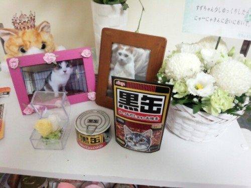 あっと君が旅立ってから随分日がたってしまいました。四十九日は人間で言えば、この世から違う世に行ってしまう日のようですが猫はどうなんでしょう。色々なところにあっと君の姿があって、最近は亡くなった時とは違う寂しさを感じます。相変わらず、携帯やパソコンの中の写真は見るとメソメソしてしまうので見れないでいます。今日は大好きだったホタテの貝柱とおやつを沢山お供えしてあげようと思います。