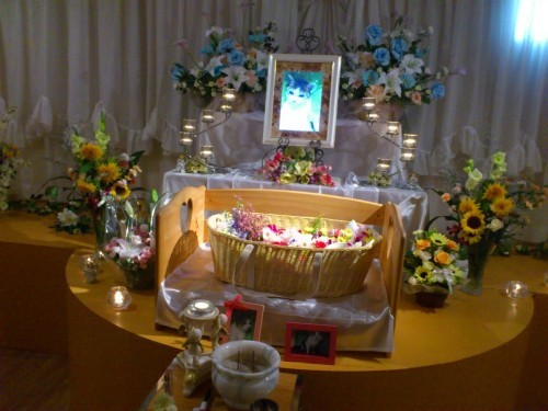 すずちゃん、今日、あっと君と同じペットエンジェルゲイト東京池袋さんで葬儀を終えお空に帰りました。虹の橋であっと君に会った時に渡してもらおうと、あっと君の大好きだったホタテも一緒に持ってってもらいました。お友達と兄と甥っ子が来てくれて皆に見送られてすずちゃんも寂しくなかったと思います。お友達がお花を持ってきてくれて、沢山のお花に囲まれて女の子らしく旅立ちました。家に戻ると、もう可愛い姿が見れないんだと、にゃーにゃ寂しくてしょうがありませんでした。すずちゃん、何でリンパ腫になってしまったんだろうね。