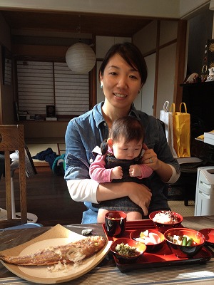 そらまめは無事に100日を迎え、お食い初めなる儀式を実家でとりおこなった。ちなみにこの手の儀式は何をすればよいかさっぱりなためもっぱらネット検索に頼っている。All Aboutによると家族の中で同性の長寿の人に食べさせてもらう(ふりをする)と良いとのことだったが実家の母(62歳)で良いことにする。そろえるものは、お頭つきの鯛、煮物、汁物、つけものなどで、実家の母カヨコははりきって何週間も前に「お食い初めセット」なるものを注文していた。なんと、「丈夫な歯が生えますように」ということで使う小石までセットでついているというのだ。便利な世の中になったものだ。 というわけでデザートだけ買って実家を訪れると、カヨコは忙しそうに魚を焼いているではないか。「あれ?インターネットで頼んだんじゃないの?」と聞くと、「それが不発だったのよ」。 なんと注文したつもりが、されていなかったらしい。しっかりしているようでズッこける共通の遺伝子を実感する。そらまめにもきっと遺伝しているだろう。運命と思ってあきらめてもらうしかない。しかし、そんなハプニングがあったとは思えない料理の出来栄えは、さすがである。お膳の上のどの位置に何を並べるのかをスマホ片手に夫が指示し、カヨコが並べ直し、あーでもないこーでもないとやっているほほえましい姿を私はビデオに収めて、ひとりで楽しんでいた。肝心の小石は、「せっかくだからお宮参りをしたところの石をもらってきたら」といって、父マサルにあらかじめ拾ってきてもらってあったので、インターネット不発でもダメージレスであった。 しかもマサルは、この石を拾うという作業を、デジカメで動画撮影していた。あとで確認したところ、早朝の真っ暗な神社の中、コケコッコーと鶏の声が響き渡り、徐々に境内の中の様子が見えてきて、石を拾うところ、マサルが手を打って礼をしてお参りするところまで、克明に描かれたドキュメンタリーになっていた。そらまめに見せるんだと張り切っているが、うーむ、その可笑しさをわかるようになるのはまだだいぶ先のことだろうよ・・・かくして無事儀式は執り行われ、そらまめは終始食べ物に興味津津で、よだれだらだらであった。 食べ物をガン見しているそらまめの写真。残念だったねー、しっかり大人で食べておきましたよん。