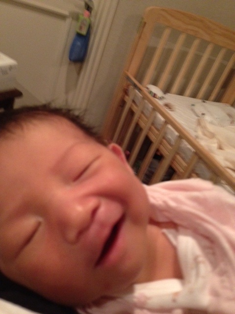 そらまめの顔はどんどん変わっていくが、1日の中でもだいぶ違う。今日は夫の友人のホームパーティーで、6歳から0歳までのお子ちゃまたちが集っていた。そらまめ初披露だったため、その中でも注目を浴びた。緊張からか、そらまめの顔は終始ちょっと怪訝そうな「若花田モード」であり、私に似てると言われた。実は「目元がそっくり」とかなり多くの人からいわれていて、「で、かわいい」と付け足してくれる人もいる(お気づかい感謝)。実は、5体満足で生まれてほしいという次の願いであった目の間が離れてませんように(私が離れてる)、二重になりますように(私は一重)、と神様へのお願いはかなわず、二重の夫に似ずにばっちり一重である。(目の間が離れているかはまだ判断つかず)しかたない、クールビューティーを目指そう。こんなお母さんでも、アメリカでは結構声掛けられたぞ。(東洋的な目がビューティーらしい)家に帰ったらそらまめは超ごぎげんで、笑顔も頻発、目も全開だったため「そうそうこの顔、ほしかったのはこの顔だよ~」とまるでシャッターチャンスを逃したグラビアカメラマンのように悔しがった。しかしそのあとは疲れが出たのかギャン泣き。夫は泣かれてもかなりがんばっていたが、そらまめの顔が真っ赤になりフンギャー!がマックスレベルに達したときに「もう限界・・・」とギブアップ。夫のハートは癒されないままである。