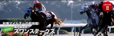 G2スワンS出馬表1 01 マイネルレーニア 牡5 58.0 川島 信二 1 02 フィフスペトル 牡3 55.0 藤岡 佑介 2 03 ファイングレイン 牡6 58.0 幸 英明 2 04 ショウナンカザン 牡4 57.0 藤田 伸二 3 05 ボストンオー 牡4 57.0 和田 竜二 3 06 アップドラフト セン7 57.0 川田 将雅 4 07 タマモホットプレイ 牡8 57.0 赤木 高太郎4 08 グラスキング 牡3 55.0 武 豊 5 09 クラウンプリンセス 牝5 55.0 太宰 啓介 5 10 ヘイローフジ 牝6 55.0 飯田 祐史 6 11 アーリーロブスト 牡3 55.0 池添 謙一6 12 キンシャサノキセキ 牡6 57.0 C.スミヨン 7 13 トレノジュビリー 牡6 57.0 岩田 康誠7 14 スズカコーズウェイ 牡5 58.0 後藤 浩輝 7 15 ホッカイカンティ 牡4 57.0 浜中 俊8 16 プレミアムボックス 牡6 57.0 鮫島 良太8 17 マルカフェニックス 牡5 58.0 福永 祐一8 18 ドラゴンウェルズ 牡6 57.0 武 幸四郎昨年1着馬はマイネルレーニア。えいさあ理論からの狙いはマイネルレーニア自身か隣のドラゴンウェルズこの2頭のどちらかが3着以内とみます。そして気になるのが短期免許を取得して年末まで滞在する予定のC.スミヨン騎手のいらっしゃいヨロシク馬券ならキンシャサノキセキも馬券対象としてマーク。2年連続ポートアイランドS勝ち馬が優勝していることからクラウンプリンセスは3着以内の可能性ありマークショウナンカザン以下アップドラフト、トレノジュビリーの順です。予想は日曜日朝までにUP予定です(`・ω・´)ゞ人気ブログランキンング参加中↓応援ポチ宜しく