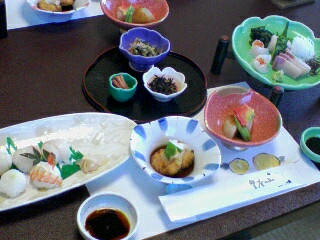 海のそばと言うか、半分海に建っているような旅館で食事とお風呂を堪能。