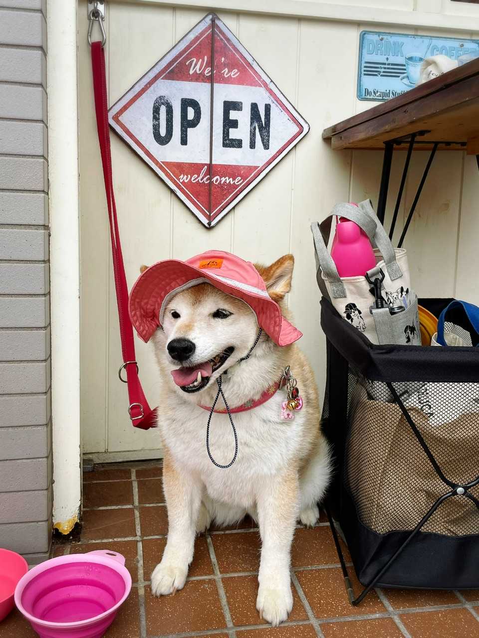 店内は小型犬ぉk。で、どこどう見ても中型犬ブラスサイズのめぐさんは店頭のテラス席へ。