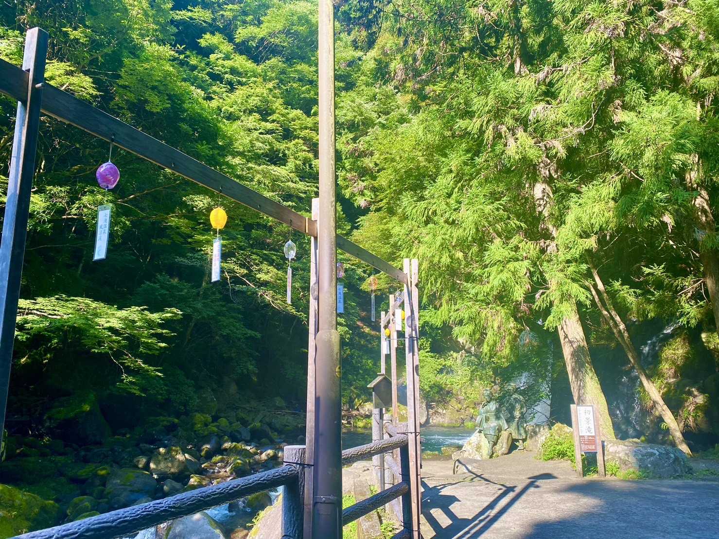 なう初見滝では風鈴の飾り付けをしていて(河津七滝風鈴渓)