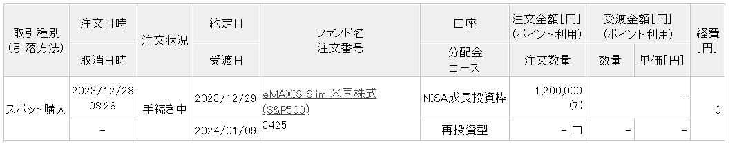 こんにちは今週、やっと今年の新NISAの成長投資枠分埋めることができました。(月5万積立を除いて) 出典:楽天証券去年の利益に対する損失繰越金を相殺した還付金のおかげです。ありがたい現状の積立設定は積立投資枠:10万/月成長投資枠:5万/月となっているのでその部分はまだですがこれで今年も360万達成出来る見通しができました。最近はS&P500が結構下がっているので1.5%くらい下がった日に注文を細かく出してました。まあ約定は2日後なのでリバウンドしてたら意味ないんですけど大体はそのまま下がったところで購入することができました。もう少し下がるとは思いますが、積立期間中の下落は全然オッケーだという気持ちに切り替えてチャートを見ています。200日線を下回るとちょっと危ないかもですが・・・まあいいでしょう(震え声)あとは来年の新年一括分の180万を貯めていかないといけません。一応確定している材料として、配当金が税引き後で約50万はあります。あとは給料・ボーナスですが月の15万がだいたい給料の手取りから生活費抜いた余りとほぼイコールなので余力に回せるのは実質ボーナスだけですね。ボーナスで130?大体半分です・・・残りはデイトレで稼ぐしかないですね笑1月10万弱目標で今年の残り期間も頑張ります。 以上