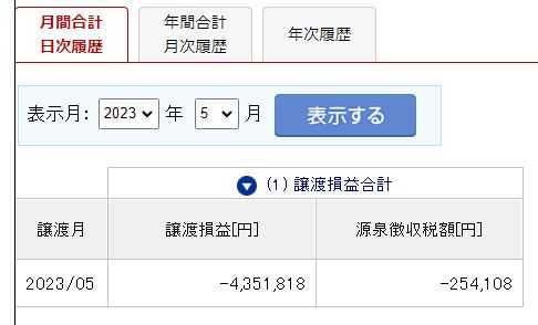 こんばんは5月の投資結果を発表します。 出典:楽天証券-435万でした・・・ispace9348でやられました。2023年度の合計は-310万です。決算シーズンでは商社系を購入しました。結構上がっていたのですが、本日の下げでほぼ購入金額まで下がりました。現状保有株は分割期待でNTT,半導体銘柄でルネサス・日本特殊陶業,商社で伊藤忠・三菱商事です。大きく下がることはなさそうですが大きく上がることもなさそうなポートフォリオになっていると思います。年末までに310万取り戻すのは一旦諦めてEPSの推移を見ながらポートフォリオの調整をしていきます。