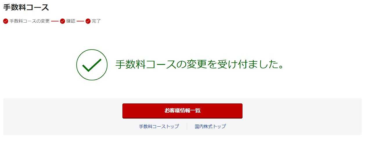 まず最初に現在の手数料コースの画面に行き、変更を押します。