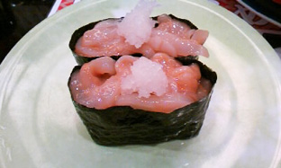 昨日はケータイからの更新だったのでちょっと写真加工ができませんでした。食べ物の写真をとったので紹介しましょう!!昨日はイベント(コミックマーケットですね)。11時過ぎに札幌東区の“つどーむ”につき、中のスペースをトロトロと見て回りました。毎回思うことですが、並んでいる机(スペース)が少ないです。夏コミ後の開催だというのにねぇ。戦利品は多少ありました。紹介しようと思ったのですが、マニアックなのでやめとこうかな?(笑)とりあえず、音楽系の総集編2冊(1冊1000円以上の代物……高い!!)と売れっ子漫画家さんの落書き帳みたいな本、黒執事本(これが本命でした)の4冊買ってきました。それでも1時間かからず見終わり、いつも通りにネットカフェへ。いつもは『自遊空間』へ行くのですが、今回は一緒にいったドニちゃんの推薦で『やすらぎくらぶ』というなんか冠婚葬祭か老人クラブかという名前のマンガ・ネットカフェへ行ってきました。カラオケの店『キャッツアイ』と同じ店舗ということで、“食べ物が充実しているから”という理由で決めたんですよ。ここで食べ物の写真を取り忘れちゃいました(〃'∇'〃)ゝテヘ♪先日の食べあわせダイエットの先生のお話しでは、夜寝る前にお腹がすいてものを食べたい時、食べる前に果物を、ラーメンや焼そばなど炭水化物を食べる前には無塩の野菜ジュースを、焼肉の前にはキムチを、そして寿しを食べる時にはガリを食べるといいというのです。しっかり昨日のイベントにも野菜ジュース持参しました。野菜ジュースのカロリーはありますが、それでもその分を足したとしても相殺してくれる成分があるらしいです。まあ昨日は麺類を食べたわけではありませんが、昼食の前に野菜ジュース。夜は回転寿し(近くのなごやか亭というところです)にいき、食べる前にまた野菜ジュース。そして寿しの前に後にガリを食べました。私は普段ガリを食べません。こういうタイプの辛さが苦手なんですね。それでも、このガリというか生姜の成分で食べたものの消化を助けるとかで体に余分な糖分が吸収されないそうです。頑張って食べました。そうそう、お寿司で変わったものを食べたので、写真とってきました。イカの塩辛軍艦さんまのなめろう軍艦イカの塩辛軍艦は塩辛が美味しかったです。さんまのなめろう軍艦は、漁師料理に「さんまのなめろう」というのがありまして、それを軍艦にしたものですね。なかなか美味しかったですよ。他にも4品食べましたが、普通のイカやまぐろなどなので写真は撮りませんでした。帰りに親へのお土産として“りんごちっぷす”を買いました。以前にも紹介したことあるかもしれませんが、南部せんべいのごまの裏側にリンゴチップがついているんです。美味しいですよ!!そうそう、この食べあわせのおかげか、ネットカフェでめったに食べないソフトクリームとかを食べたのに今朝増えてませんでした。今日で開始から5ヶ月めに入りました。いまのところ8kg減。まだまだ頑張りますよぉ!!p(*^-^*)q オシッ♪