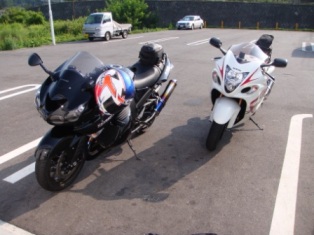 今日は、オリンピックの野球、日本対アメリカを見たわけです。で、とてもがっかりしたアドバンス4番は、久しぶりに定時で仕事を終わりにしたので長いこと手付かずになっていた、ツーリングレポを書こうかなと思います。あれはそう、8月13日のことです。メンバーはいつもと同じ、chupa君とアドバンス4番の二人。目的は能登半島一周。がんばれば一日で回れんじゃね?ダメならその辺で寝ればいいんじゃね?的な考えで実行することに。なので、宿もとってません。実際、一日でどれくらいいけるかわからないし、宿の位置にあわせてツーリングを進めるのもどうかと思ったので。。。まあ、今考えれば、全行程のちょうど真ん中よりもちょっと先(二日目を楽にするために)に宿を取っておいてもよかったかもと思うんですが。で、ちょっとがんばって朝は5時集合です。が、4時に起きるものの外は雨。天気予報では晴れということだったので、たぶんそのうち雨も上がるのでしょうがさすがにしょっぱなからぬれるのも嫌だったので、集合時間を6時に変更。出だしからいきなりバタバタしてしまいました。結果、6時には雨は上がりましたが、路面はウェット。でも、路面が乾くまでは待てないということで出発。今回はさすがにワープ航法を多用することにしたので、いきなりワープ。路面の乾いたところを狙いつつも、けっこういいペースで巡航。何しろ今回はchupa君も隼、アドバンス4番もZZRということで手加減(?)なしです。この頃はまだ涼しいというよりも寒かったですね。50kmほど高速を走り、豊科で高速を下りて148号を北上。8時頃には日差しも出てきて、気温も上がってきたので、コンビニによって、chupa君はメッシュジャケットのインナーをはずします。その後、いいペースで日本海にむかって突き進み、日本海にぶち当たるちょっと手前で北陸自動車道にのります。糸魚川ICから金沢森本ICまで130kmほどをワープです。しかし、この頃には標高も0に近いわけですし、太陽も高度をましてきて、気温は一気に高くなります。馬鹿みたいに暑いです。高速道路を時速あえうkmでかっとんでいるというのに、汗が出てきます。風が熱風です。「この暑さに耐えられるのか?」と言う言葉が、一瞬脳裏をよぎります。金沢森本ICで高速をおりて、そのまま能登道路に入ります。道の駅で「能登半島の根元まで来たよ」と海の写真を写メールで送ったりしたのですがこの頃には、「ただそこにいるだけ」で汗が吹き出てきます。死にそうです。目的地を完全に選び間違えた気がしてきました。時間にして11時半。そのまま能登道路で穴水まで北上して、そこから一号で輪島まで出ます。この頃には暑さと空腹でヘロヘロ。なにやら「キリコ会館」という有名なものがあったのですが、素通り。ずんずん進むと、ずんずん田舎に。昼ごはんを食べるところはおろか、ガソリンスタンドもあまり見かけません(^^;)そんななか、千枚田に到着。きれいな段々畑(ってか田んぼ)がひろがっていました。絶景です。それから30分ほど走ると、寂れた民宿というか食堂というかが一軒。どうする?はいってみる?やばくね?やってんのかな?などと、言いつつ入ってみると、中は広々。クーラーも効いていて極楽極楽♪昼食は能登丼を食べました。なんとまあ、道場六三郎がアドバイザーを勤めているらしく、能登半島のあちこちに能登丼を食べれるところがあるみたいです。もちろん店によって、それぞれ違う能登丼が出てくるみたいですが。絶品でした。おいしかったです。もちろん魚介類もおいしかったのですが、特製のたれの味付けが抜群でした(^^)もう一度食べたいです。そこからさらに北上、能登半島最北端を目指します。最北端に行く途中に「ゴジラ岩」なるものがあるらしいのですが、あまりの暑さに「そんなの、別に見なくてもいいよな」的な気持ちになり、あっさりスルー。その代わり、窓岩は抑えてみました。っていっても、「走っていたら見えたからよった」のですが(^^;)窓岩です。源義経が放った矢で穴が開いたとか。。。どうしてバイクと一緒にとらないのかというと、理由はこれ↓バイクと岩が撮りたかったのですが、家族連れがどいてくれない。しょうがないので、こんな写真になっちゃいました(T T)なので、家族をよけるとバイクも写らないのでありました。窓岩から一時間ほどで最北端につきましたが、何しろ暑いのと若干の疲れが・・・。そのため「灯台まで歩く元気がない」と、スルーする寸前でしたがせっかくここまで来たんだからと気を取り直し、がんばってあるくことに。で、この写真です。この頃で15時。そろそろ、夜中までかかっても帰るか、それとも宿を取るかの選択を迫られてきました。(その辺での野宿は、この暑さでは不可能と判断)ガイドブックに載っている宿に端から電話してみることに。道を走った感じ、渋滞はまったくないどころか車自体がほとんど走っていないし大規模な海水浴場もない。これな