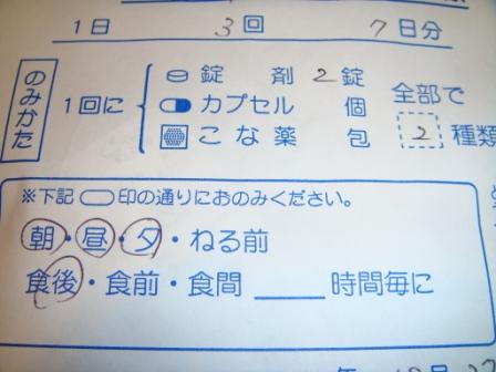 ふと思ったことがあります。毎食後に飲む薬なんですが。。。。7時に朝ご飯、12時にお昼ご飯、19時に夕ご飯とするとそれぞれの食事の間の時間は朝~昼が5時間、昼~夜が7時間、夜~翌朝が12時間となります。薬の効いている時間を考えると、非常にアンバランスじゃないかと思うわけです。一日中、満遍なく薬の効力を生かすには7時、15時、23時の8時間ごとに薬を飲んだほうが、いいと思うわけです。まあ、食後に飲まないと胃が・・・という話もあると思うんですが・・・。昨夜早めの夕食(18時30分)のあと咳止めの薬を飲んだら寝てすぐ(24時頃)には薬の効き目が切れて、とても大変だったのでこんなこと考えちゃいました(^^;) うちのサイトです。よろしければのぞいてみて下さいm(__)m