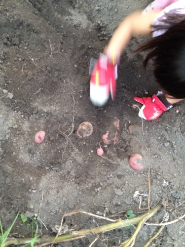 ちょっと前にも書きましたが、家庭菜園の事以前のブログで、売っている物よりもおいしいとか新鮮とかそんな事を書かせていただきましたが一番の醍醐味と言ったらやっぱり収穫じゃないでしょうか?それも子供と収穫するってのがなんとなく、子供にも良い影響を与えそうな気がしませんか?いや、なんとなくですけどね(^_^;)こんなふうにイモを掘ったり収穫したトマトを両手で抱えたり(^-^) うちのサイトです。よろしければのぞいてみて下さいm(__)m