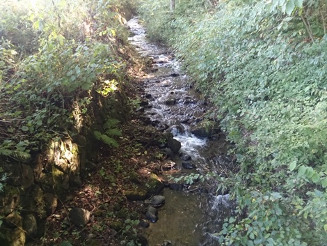 浮いちゃうので苔の生えた石を二つ拾ってきて木の上に載せてます