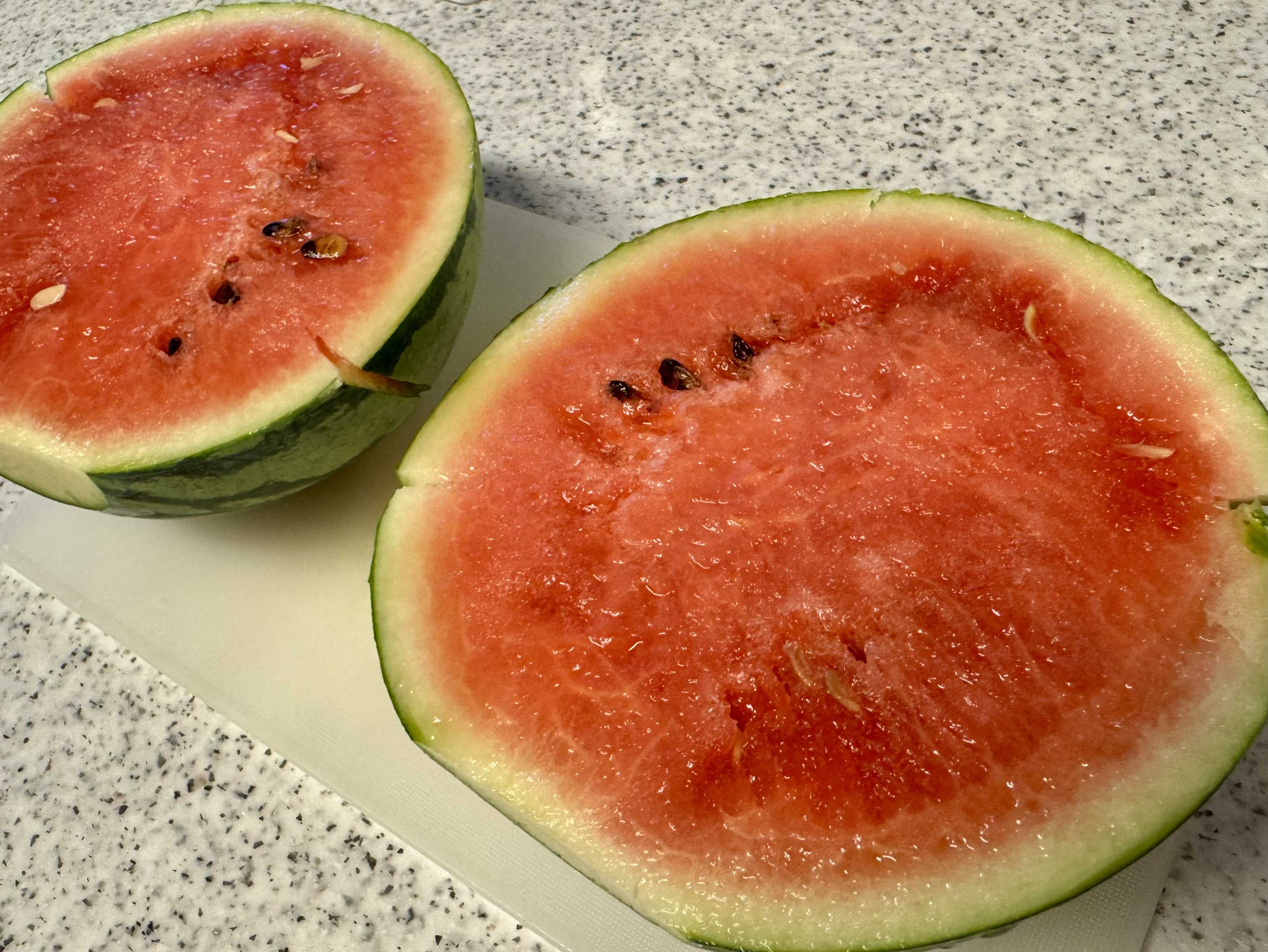 去年も豊作だったが、今年も小玉スイカはいい。何がいいって、5月にスーパーで買ったスイカの種で育てられ、8月に収穫できる なんだかんだで種から野菜を育てるのは大変だから、苗を買ってくることがほとんど。その中でもスイカは超簡単に育つ。これは大きなメリット。(ただし路地なら。鉢は10号サイズでないと、食べられる実を付けるのは難しい) 例外的に、豆類は種で育てられる。あと、ミニトマトは脇芽で増やすことができる。サツマイモも茎で無限に増やせる。結構あるか。スイカは買うとそこそこ高い 小玉でも500円/個、大玉なら1,500円/個はすると思う。それを2つも3つも作ることができる。意外に丈夫 ウリ科にたかるウリハムシさえなんとかすれば、全然大丈夫。ちなみに我が家は、市販の殺虫剤は全く使っていない。トウガラシスプレーを適当に噴霧くらい(何年か前に激辛唐辛子が豊作で、乾燥させたはいいが、使いきれていない)。何よりうまい 甘いし、うまい。冷蔵庫に常にスイカがあるのは幸せだ。