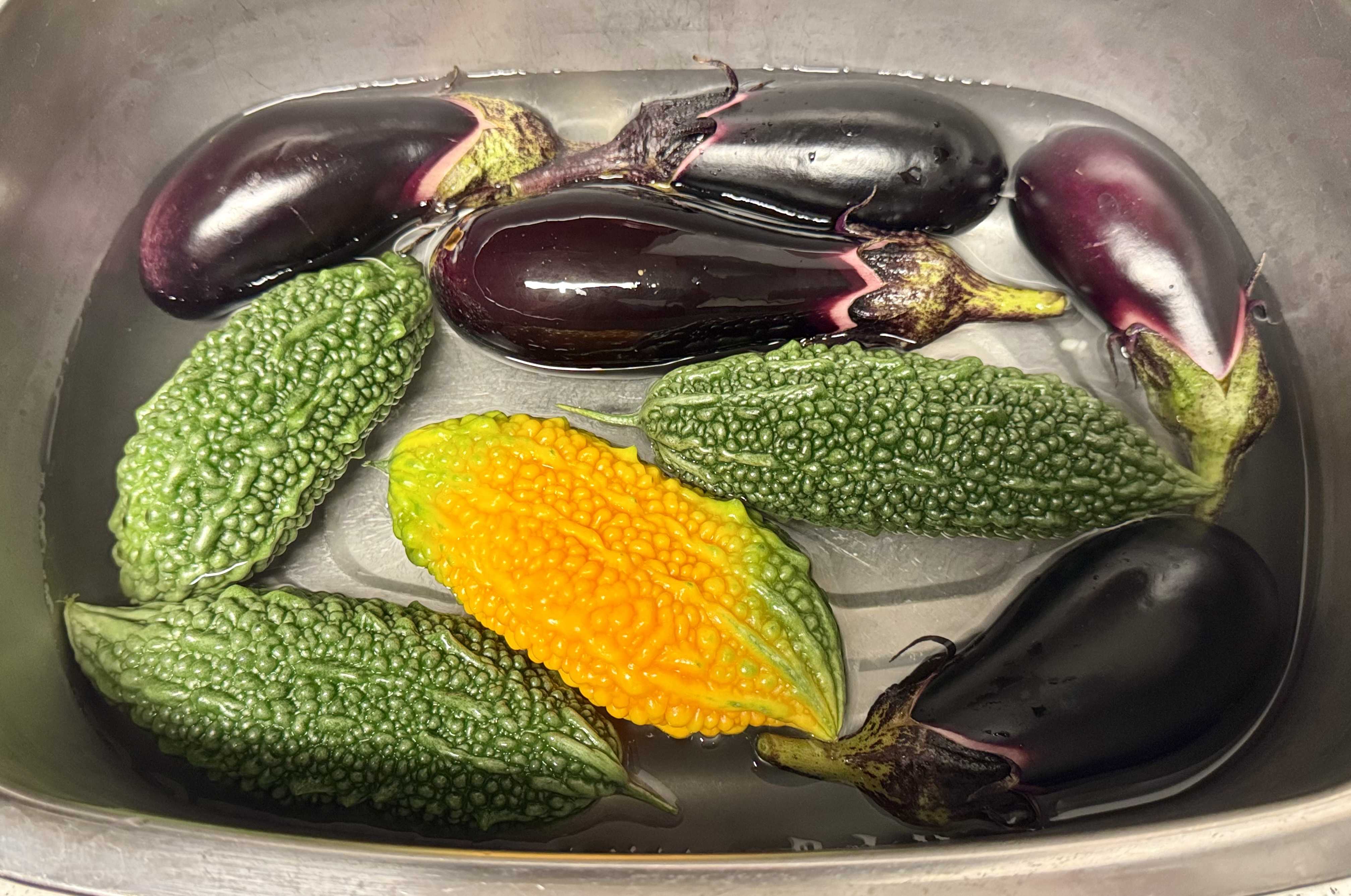 今年はゴーヤもナスも順調だった。ナスは4本、ゴーヤは鉢に1本だけだが、家族4人で食べ余るほど収穫できた。下写真に黄色いゴーヤが混じるのは、収穫が遅くて熟れただけで、食用に問題はない。ピーマンだって実らせておくと赤くなる。それと同じだ。写真にはないが、そのピーマンも小ぶりながら、数はよく採れた。天気予報では、10月まで30度を超える日があるとアナウンスしているから、もう苗の抜きどきもわからない。一方で、ミニトマトは全くパッとしなかった。ナスもトマトも同じナス科なのに、数も量も採れなかった。理由は酷暑なのか連作障害なのか、よくわからない。ただ、来季はキュウリを植えた一画と、豊作ナスの一画を入れ変えて、植えていこうと思う。農業用直管パイプで棚を組んでしまったから、数年同じ場所でキュウリを栽培し続けたが、そろそろローテーションでよかろう。