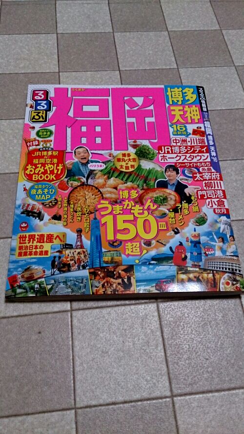 昨日楽天ブックスで注文して、福岡のガイドブックを買いました 18日から2泊3日の福岡旅行に友達と行きます。 福岡は食べたい物がいっぱいです 今からガイドブックを見て、一人で作戦会議です(笑)