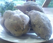 昨日のコメントにThe Gtles-Pさんからアメリカ芋の花の写真がないだろうか、という依頼がありました。 申し訳ありませんが、手元にアメリカ芋の花の写真はありません。 文献※1によると「サツマイモは生まれ故郷の熱帯ではたくさん花をつけるが、温帯ではめったに開花しようとしない。・・・・」とあります。実はわたしもアメリカ芋の花は1度しか見たことがありません。もう4年ぐらい前になりますが、とても暑い年がありまして、そのときに数輪の花を見ました。残念ながら写真に収めるのを忘れてしまいましたが、生のサツマイモの花を見たの羽初めてだったのでとても感動したことを覚えています。 サツマイモのはヒルガオ科の植物なのでアサガオに似た(アサガオの花よりくぼんだ感じ)花が咲きますね。 他の文献※2には、「キタダチアサガオにサツマイモをつげば、サツマイモの花をかんたんに見ることができる・・・」とありました。小学校の理科の授業なんかでやってみたらとても面白いですね。アメリカ芋の花を見た人あまりいないんじゃないかな。 アメリカ芋ではないけれど、ネット上にサツマイモの花の写真がありましたので、リンクしておきました。参考にごらんになってください。 参考文献※1、『ものと人間の文化史90 さつまいも』坂井健吉著 法政大学出版局※2、『そだててあそぼう3 サツマイモの絵本』 農文協PS,はじめコメントを見てアメリカ芋の写真がほしいのかと勘違いし、アメリカ芋の写真を撮っていました。アメリカ芋の花の写真だったと後で気がつきました。まあせっかく撮ったんで掲載します。