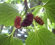 この季節、下を向いて歩いていると、木陰になっている道路で黒っぽく汚れている場所をよくみることがあります。島に来た頃はあまり気にもしていませんでしたが、そういう場所に行って上を見上げると必ずクワの実が垂れ下がっているがわかります。 長さ2cm、幅1cmぐらいの房が、芋虫の巣のようにたくさんたくさん垂れ下がっています。あまり熟れていないのは薄い赤色をしていますが、十分熟れたものは濃い褐色になって葉の間から差し込む木漏れ日にあたってつややかに光っています。それをそっと一房指でつまんで、口に含むと口の中で小さな粒がはじけ、あまい果汁がひろがります。シンプルだけど本当に美味しい飽きのこない味ですね。 島では以前子供たちがこの時期クワの木に登りクワのみを採ってはオヤツとしてよく食べたとか・・・。たくさん採ったクワの実を着ているシャツで抱えるものだから、シャツは自然に真っ赤に染まってしまったとか。 そんなクワの実を集めては、クワの実ジャムを我家でも少しつくります。