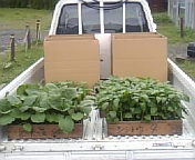農園では夏苗の販売の真っ最中です。連日たくさんの島民の方が苗を求めに農園に来てくださいます。 ところで新島村の行政管内は、新島と式根島の2島(他に無人島もあるが)にまたがっています。ですからこの農園で生産された苗も式根島の島民の方々にも送り届けているのです。 だいたい週2回程度、連絡船(新島と式根島を1日三度往復している連絡船)に荷をのせて送り届けています。また式根島での苗の販売に関しては、JAの式根島店にお願いしています。 昨日は式根島への苗の出荷の日でした。写真に写っている連絡船は「にしき2」といいます。新島と式根島の所要時間は10分ぐらいですね。天気のいい気は風に打たれ海の景色を眺めながら行くのもとても気持ちいいものですよ。時々トビウオが海上を何十メートルも飛んでいる様子に出くわします。
