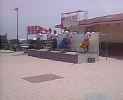 昨日の朝の雨の勢い(まるでタライをひっくり返した様な雨)からは到底トライアスロンは中止かも~と思いましたが、お昼頃から天気が回復し、午後はすっかり晴天になり無事大会を終えることができました。確かに約200人分の食材も全部発注してしまっているし、ボランティアを含め数百人もの人が動き出してしてしまっているわけですから、中止にしてしまったほうが後で大変になってしまうわけですが・・・。 参加者数は当初予定していた140名ぐらいで、朝の高速艇が欠航になってしまったため予定より50名ぐらい少なくなりましたが、参加された選手の皆さんは、気持ちのよい新緑の中でレースを楽しんでもらえたのではないでしょうか。 夜の式典も各団体の皆さんの協力により、刺し身の舟盛りをはじめ、島の料理など、豪勢に料理が並び、さらに新島太鼓の風神組のみなさんのすばらしい太鼓の披露や、飲み放題ビールや島焼酎で盛り上がりました。 とにかく式典を担当していた身としましても無事に終わりホッとしています。