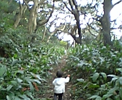 最近、天気のいい日曜日は家族みんなで近くの山にハイキングへ出かけています。今日も10時ごろから晴れ間がでて、風もなく絶好のハイキング日和となりました。 今日の目的地は「田原遺跡」、新島の十三社神社から東の方角、宮塚山の中腹にある遺跡です。 新島村の博物館には新島や式根島で発掘された縄文や弥生時代の遺物が展示されていますが、そこには「田原遺跡」からの出土品も並べてあります。今私の記憶が確かでないので、その遺跡がいつの頃のものか思い出せませんが、数千年前に新島に住んでいた人々の痕跡がその辺りには残されているわけです。 11時ごろおにぎりとお茶と子供にねだられて買ったプチヨーグルトを持って4人でいざ出発!!。探検隊は大張り切りの4歳の長男を先頭に、妻、そして登山口数十メートルでダウンした次男2歳を担いだ私の編成です。 この山の斜面は西側に面しているためたか、高木は少なく、ほとんどの木の枝は東側に流れていました。また幹が細い木が多いせいか、木漏れ日が地面まで届き、とても明るい感じの山道が続いていました。 ところでこの「田原遺跡」には新島ではめずらしく小川が流れています。新島の表面は砂で覆われているため、雨として降った水はすぐに土の中へ染込んでしまします。ですから地下に貯水池ができ、村民はそれをくみ上げて生活水として利用していますが、その反面、川を見ることはまずありません。 しかしここ「田原遺跡」では、山に降った水が山の中腹から湧き水として染み出して、広いところでは幅50cmぐらいの川をつくっているのでした。 わたしも6年間新島に住んでいますが、水が流れる川を見たのは今回がはじめてでした。透き通った水が白い砂の上を美しく流れて様子には本当に感動しました。 数千年前に新島に住んだ人々も、枯れることなく流れるこの水を求めてこの川辺に居を構えたのでしょう。見たところ遺跡らしいものは見えませんでしたが、時を越えて彼らと同じ空間に自分たちがいることをとても心地よく感じました。 さて長男は目的の山の中腹まできちんと一人で登ってくれて、12時過ぎにはみんなでおにぎりを広げて昼食会。次男もほとんど抱っこされたままでしたが、食欲だけは大人並でした。 なかなか素敵なハイキングになりました。 さて次の目標は4人で宮塚山登頂です。