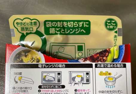 開け口を折り返して 500Wのレンジで1分  早いです
