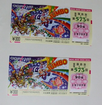 去年の年末ジャンボ・・当たっていました。まだ換金していません。って利益は300円で~す。昨日の華の樹会の新年会 参加者は45名。男性15名。会長さんのご尽力で男性も少しずつ増えています。で昨日のビンゴ大会・・一等賞でした \(^-^)/中身はコレ! 坂角の八楽(やらく)会社の忘年会でも毎年ビンゴ大会があり、何時もリーチは早いんですがビンゴには中々ならずイライラしていたので今回も同じかと思ったら一番最初でした。12枚開けた時点で7箇所中央横でリーチ。もう1人リーチが掛かっていたので、何時ものことだな・・と思っていたら14枚目で見事ビンゴ!。何時も控え目な私が'ビンゴ~~'と叫んでいました。いや~~なんでも一番は嬉しいですねぇ。楽しませて頂いた役員さん達に御礼です。 m(_ _)m正月から良い事が続いていますが・・注意しないと・・今日はこれから心臓病検査です。良い事が続けば良いが・・・このツキが今年の全てで無ければ良いが・・・