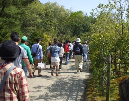 4月21日に行ったサツキとメイの家。モリコロパークの一番奥になるんでしょうか、日本庭園のはずれにあります。愛・地球博が行われたときは抽選で全く見に行けませんでしたが、今は毎日6回くらいのツアー見物が出来ます。××:30分がスタート時間のようです。平日ですと時間前に行けば参加できるでしょう。事前説明を含め40分くらいのコースです。日本庭園横の事務所から出発 歩いて5分くらいです 草壁家の門から 施設入口は手前に在ります 表札 室内組、屋外組みに分かれて見学開始 15分くらいで交代します 外では色々説明してくれます 私は聞いていませんね 家の前は池になっています 隣のトトロに出てきたネコバスの停留所 女の子は関係有りません 池から家を取りました 家と池の間に菜の花が咲いていました これはアニメには無かった と の字の鬼瓦 玄関から入ります お父さんの書斎 考古学者だそうですが 乱雑・・女房に片付けられそうです・・ここは触れるの禁止です 和室 ふすまを開けて中を覗いて触っても構いません 台所 ここの茶ダンスも開けて触っても構いません お父さんの書斎を外から 和室前の縁側ここで一枚撮って貰いました 裏には井戸があります 水は出ていました リヤカーが立て掛けられていました 昔の実家を思い出します 庭から展望台が見えます 展望台に向かう通路から撮りました ここは無料です 展望台の上から撮ってみました ここも無料です 見学が終わり日本庭園の横を戻り、疲れたので途中から園内無料バスで駐車してある東ゲートに帰りました。予定外のサツキとメイの家を見ることが出来ました。ここは有料で500円だったかな?何時もの無料パスだったのでよく覚えていません。写真は全て屋外から撮った物です。室内での撮影は禁止されていますが外から室内を取るのは許されています。多分室内に滞留する時間を短くするためと思われます。