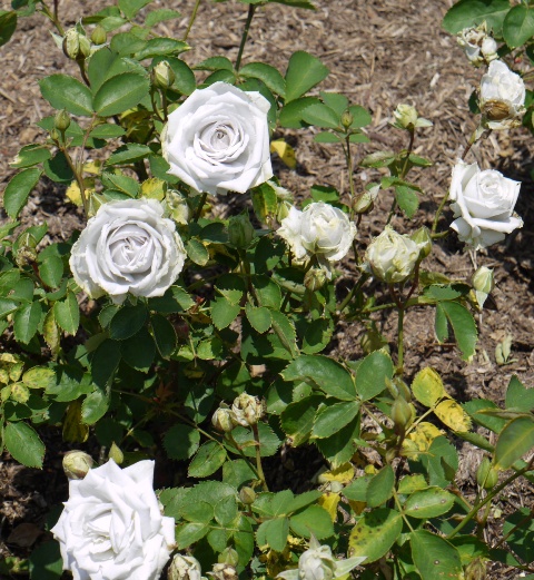 春日井市都市緑化植物園の薔薇を見に行ったのは18日の4時近く。この時間ですと入口の駐車場も空きが有り歩かなくて済みますね。此処の薔薇園は屋外に作った薔薇の展示館のように同一種を3~5株ほど並べています。まずは全体景色 薔薇の株と花のアップですアイスバーグ銀世界エバーゴールド ゴールデンハートサプライズショッキングブルーブルーバユー今回満開を見て好きになった チャールストン一株に色々な色が出ます 花火のスターマインを思わせますニコールブライダルピンクフラウ・カール・ドルシュキマリアカラスメモアーモナリザ光彩桜貝芳純魅惑連弾 ついでに菖蒲園も覗いてみましたがまだまだでしたね。
